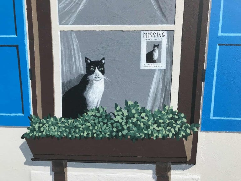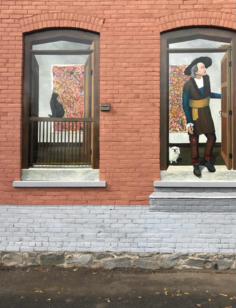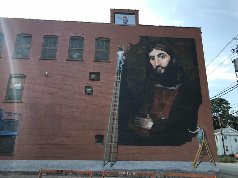 Lyons is widely recognized for his monumental public murals, including the east-facing brick wall at 153 Maple Street in Glens Falls, where he created Portrait of a Jewish Man—a trompe l’oeil reinterpretation inspired by Rembrandt’s Christ with Arms Folded, housed nearby at The Hyde Collection. Completed in 2022 and privately funded, the mural is layered with illusion, subtle narrative detail, and moments of quiet wit, inviting sustained contemplation rather than immediate interpretation. Lyons has described the work as an invitation to reflect, not instruct.